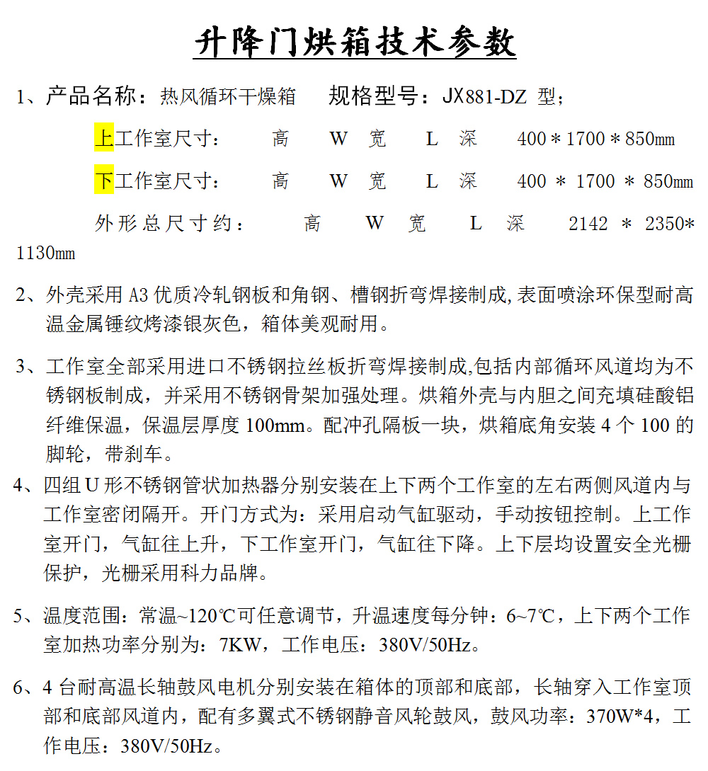 氣缸開門烘箱